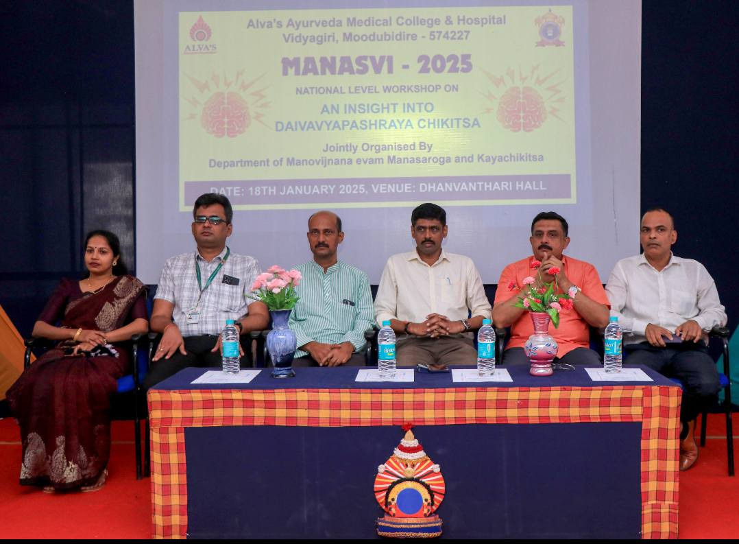 National Level Workshop on ‘An Insight into Daivavyapashraya Chikitsa’, was organised by Dept. of Manasa Roga, Alva’s Ayurveda Medical College, Moodbidre. On 18th January 2025, a national-level workshop on "An Insight into Daivavyapashraya Chikitsa was organized by Manasa Roga and Kaya Chikitsa. Dr. Raghavendra Udupa served as the resource person for the workshop. The inauguration ceremony took place on the same day at 9:30 AM, with Dr. Vinayaka Gaalimane gracing the event as the Guest of Honor. The chief organizing secretary for the workshop was Dr. Vinitha D’Souza. The welcome speech was delivered by Dr. Raviprasad Hegde. The presidential address delivered by Dr. Sajith M. Vote of thank by Dr Vinitha Dsouza, master of ceremony was done by Dr Smitha suraj. A total of 150 delegates from various Institution attended and benefited from the workshop.